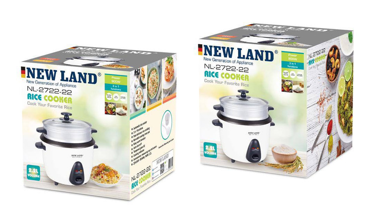 پلوپز نیولند مدل NL2722-22 با توان 900 وات، سبد بخارپز، قابلمه سرامیکی ضدچسب، کفگیر و فنجان اندازهگیری، انتخابی ایدهآل برای پخت برنج خوشطعم و بخارپز کردن سبزیجات است.